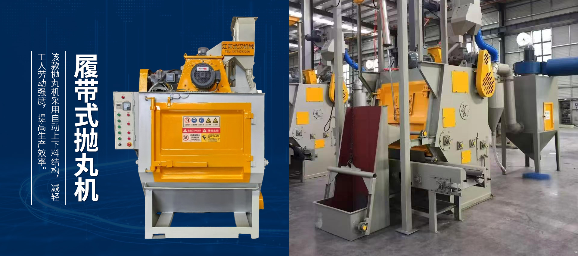 【現(xiàn)場安裝圖集】:簡介:吊鉤式拋丸機分為單吊鉤和雙吊鉤,拋丸機由吊鉤裝載工件交替進(jìn)入拋丸清理室內(nèi)。利用拋...